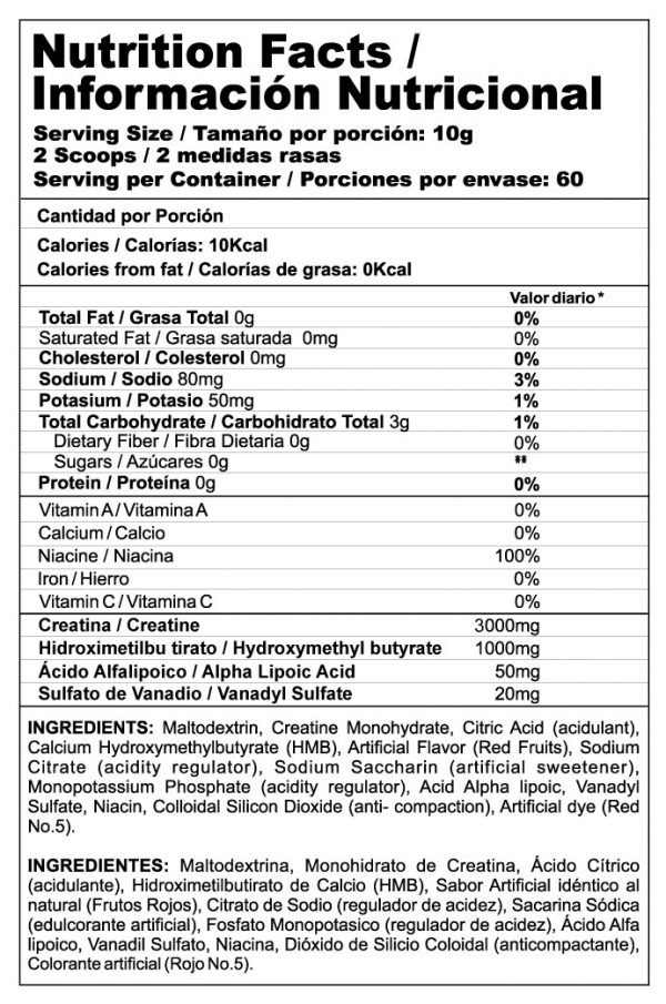 Crea Stack es el coctel perfecto para recuperación post entrenamiento: Creatina Monohidratada, HMB y Acido Alfa Lipoico. Mejora tu fuerza, potencia, resistencia y masa muscular.