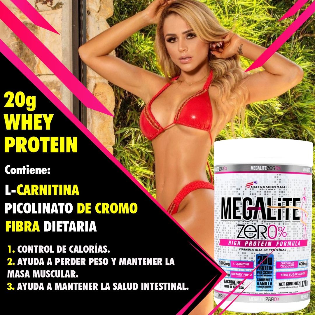 MEGA LITE es la fórmula más avanzada en el mercado para perdida de grasa. MEGALITE es el único reemplazante de comidas para pérdida de peso en el mercado, que te ofrece 19g de proteína de alta calidad por toma; a diferencia de sus competidores que ofrecen menos de la mitad de proteína. Una persona sana en condiciones normales requiere 50g de proteína al día (FDA USA) para mantenerse saludable; Recuerda que en nuestro cuerpo proteína no es solo músculo, también hay proteína en: la piel, sangre, hormonas, etc.