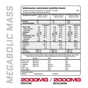 Haciendo de Megabolic Mass un ganador de masa muscular efectivo basado en estudios actualizados. Adicionando Creatina y Betalanina para mejorar la resistencia física y promover el crecimiento muscular
