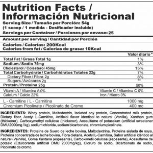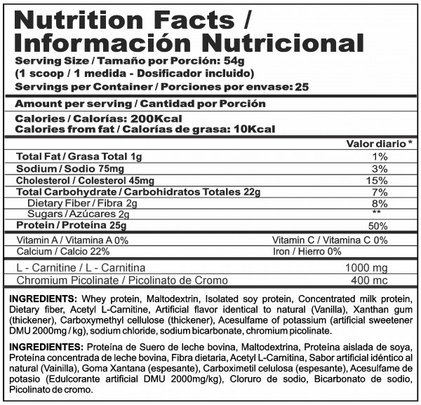 Posee L-carnitina que colabora a la perdida de pesoProteína HidrolizadaBase: Suero de leche de bovinaPicolinato de CromoConsistencia cremosa al prepararAporta optimo valor nutricional