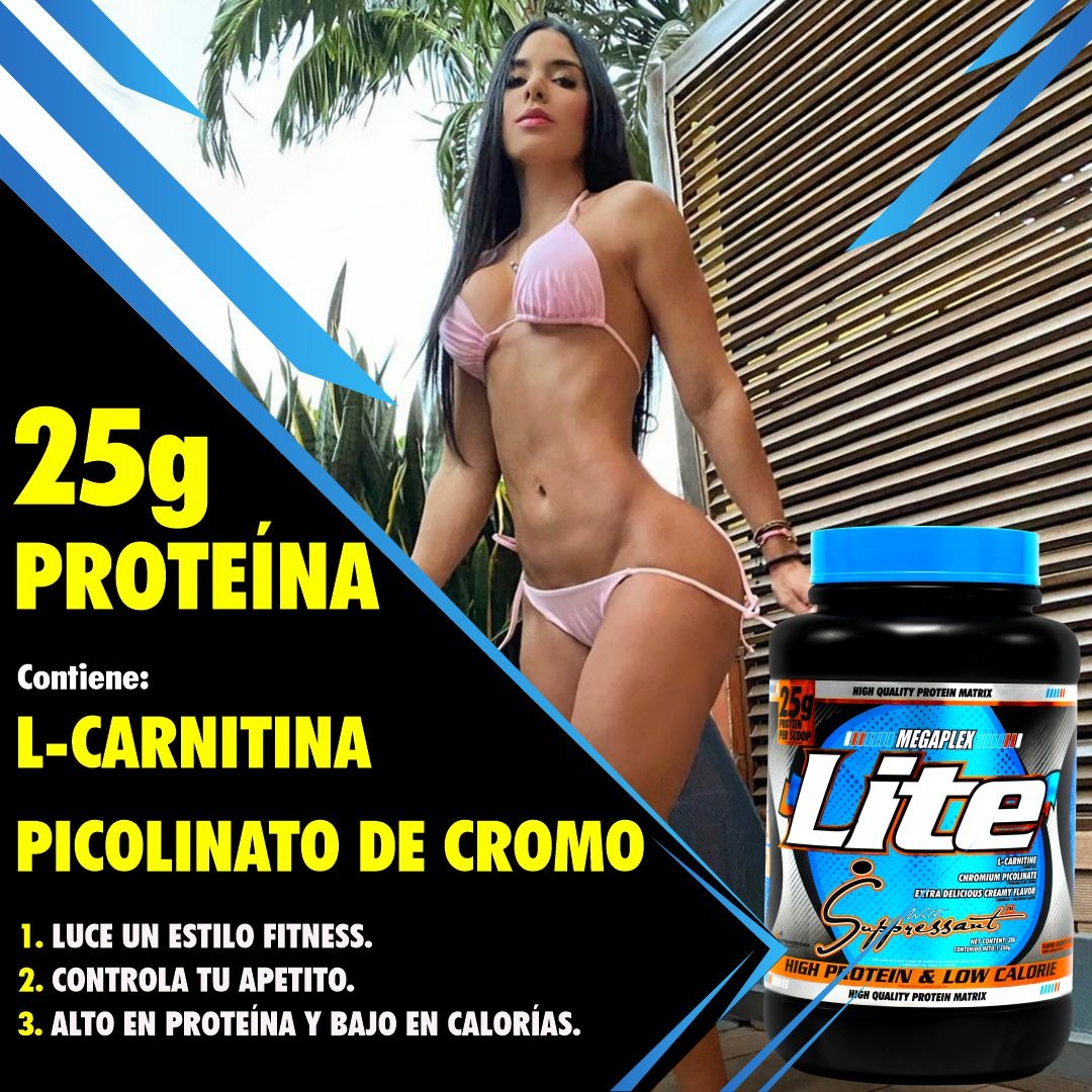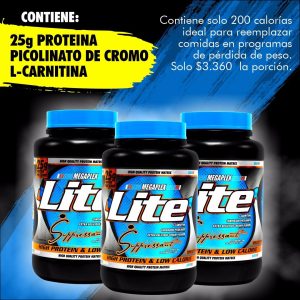 Megaplex Lite es el producto ideal para obtener excelentes fuentes de proteina para alimentar tus musculos con pocas calorias. Contiene 25 gramos de proteina, 1000mg de L carnitina, 400mg de picolinato de cromo y solo 200 calorias