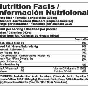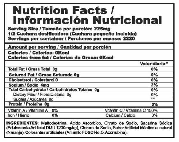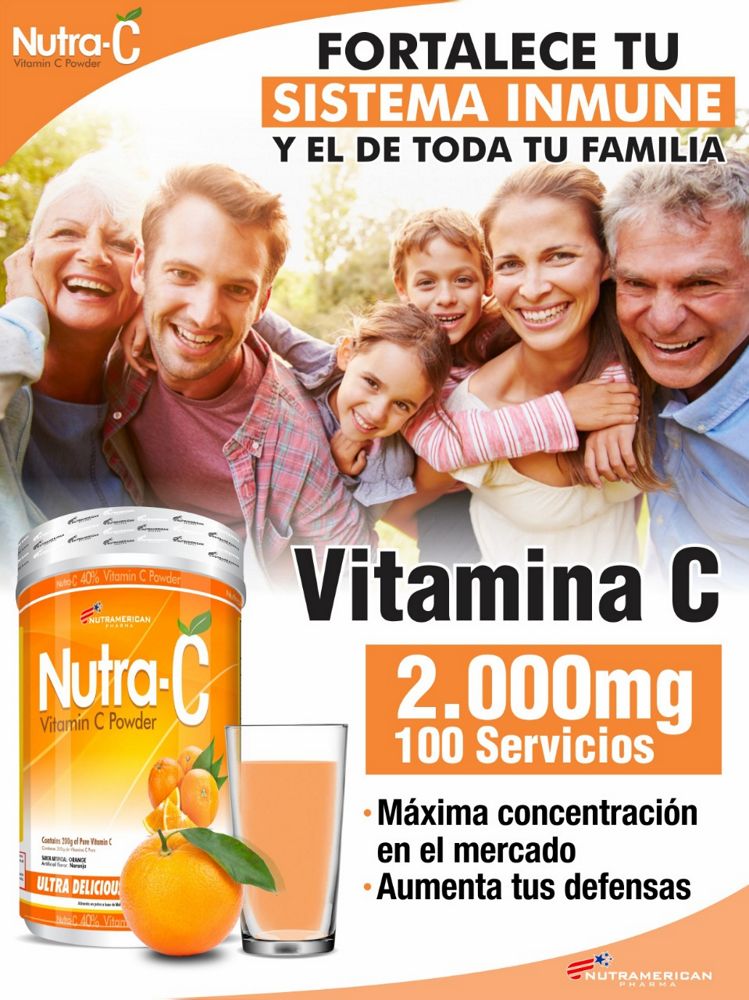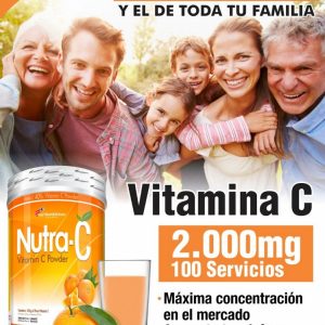 Nutra-C contiene 200g de Ácido Ascórbico, equivalente a 400 tabletas de Vitamina C de 500mg, ultra concentración ideal para personas que buscan aumentar la ingesta de Vitamina C en su dieta.