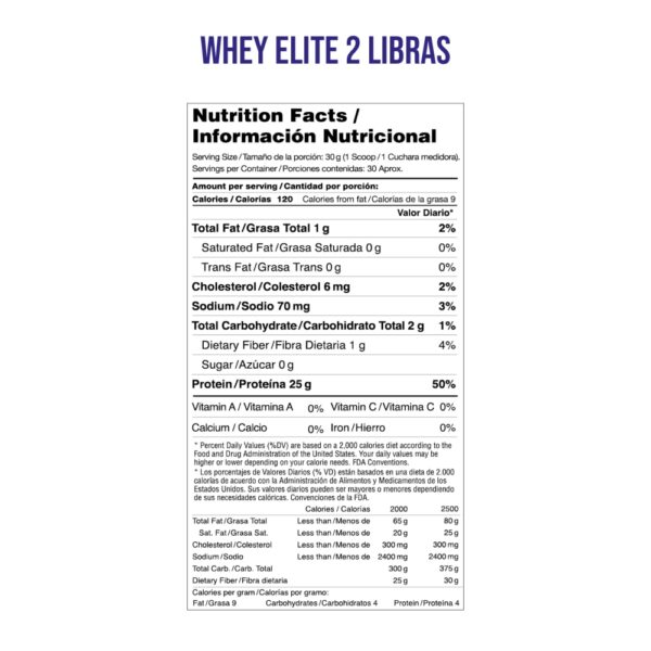 100% Whey Elite® es una proteína de suero lácteo concentrada y aislada con rápida absorción y digestibilidad. La proteína de suero favorece la recuperación después de la actividad física y ayuda al desarrollo de la masa muscular magra. Con Nutraflora® (fibra prebiótica) y Lactospore® (probióticos).