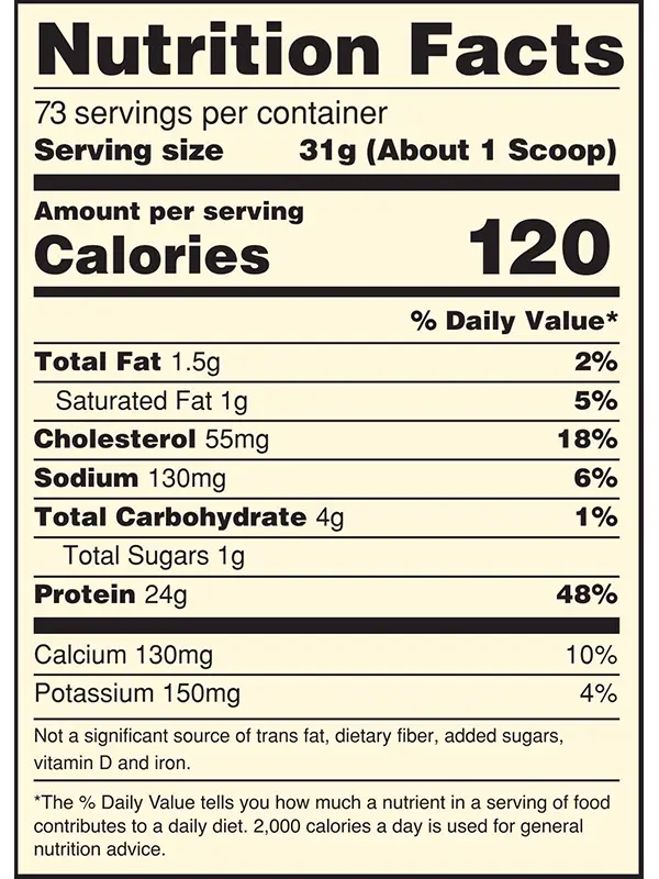- 24 gramos de proteína por porción para ayudar a desarrollar y mantener los músculos.